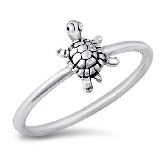Cute Tiny Sea Turtle Animal New .925 Sterling Silver Simple Band Sizes 4-10