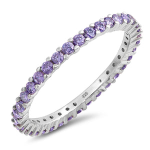 Amethyst CZ Eternity Stackable Knuckle Ring .925 Sterling Silver Band Sizes 4-12
