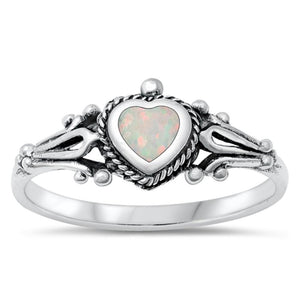 Bali Heart White Lab Opal Beautiful Ring .925 Sterling Silver Band Sizes 4-10