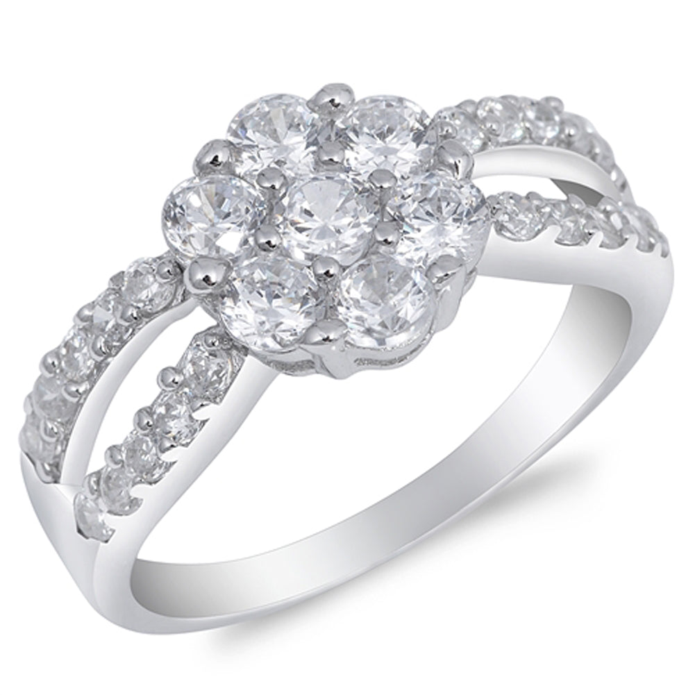 Clear CZ Flower Cluster Infinity Knot Ring .925 Sterling Silver Band Sizes 5-9