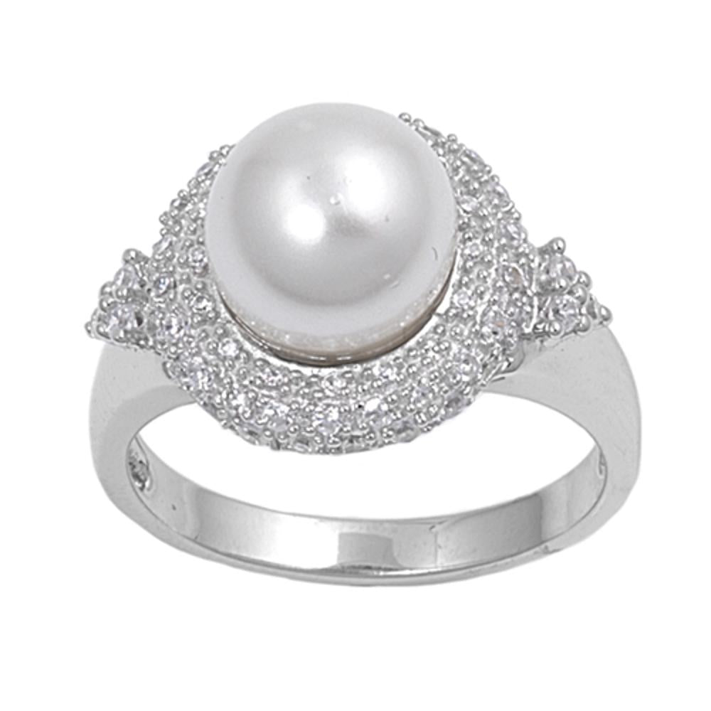 Clear CZ Freshwater Pearl Halo Cluster Ring .925 Sterling Silver Band Sizes 5-10