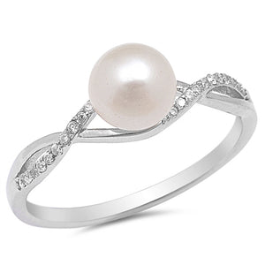 Clear CZ Freshwater Pearl Infinity Knot Ring New .925 Sterling Silver Sizes 5-10