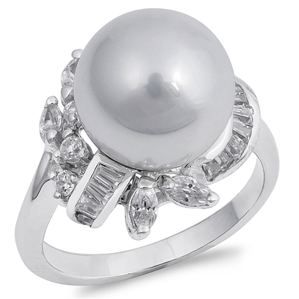 Clear CZ Freshwater Pearl Polished Ring New .925 Sterling Silver Band Sizes 5-9