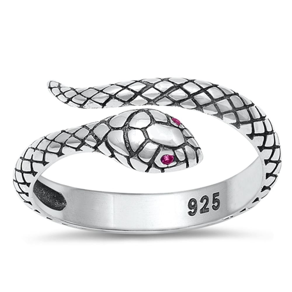 Open Snake Viper Adder Ruby CZ Unique Ring .925 Sterling Silver Band Sizes 4-10