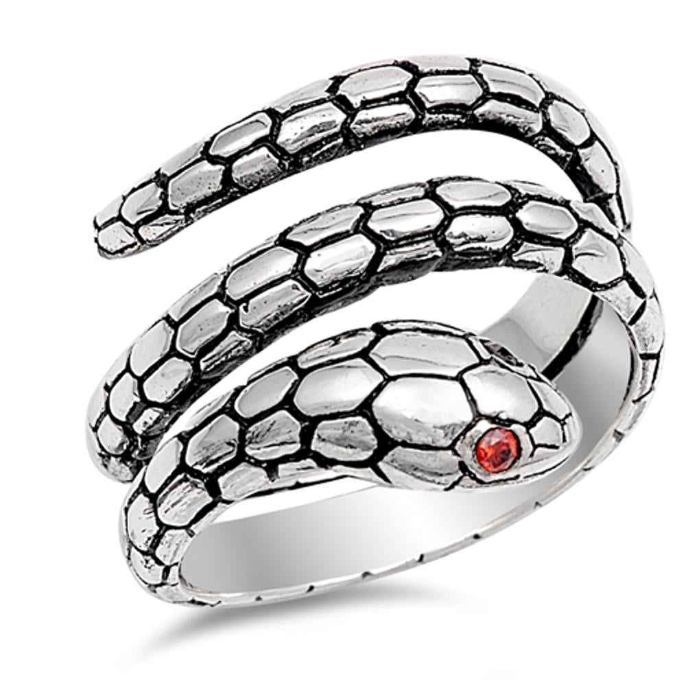 Snake Garnet CZ Eyes Scale Serpent Ring New .925 Sterling Silver Band Sizes 6-11