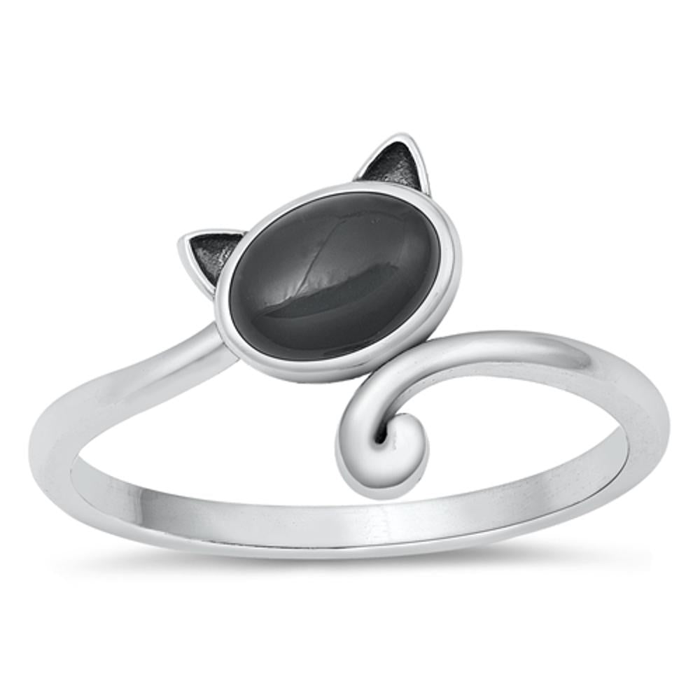 Discover the Elegance of Our Sterling Silver Black Onyx Cat Ring