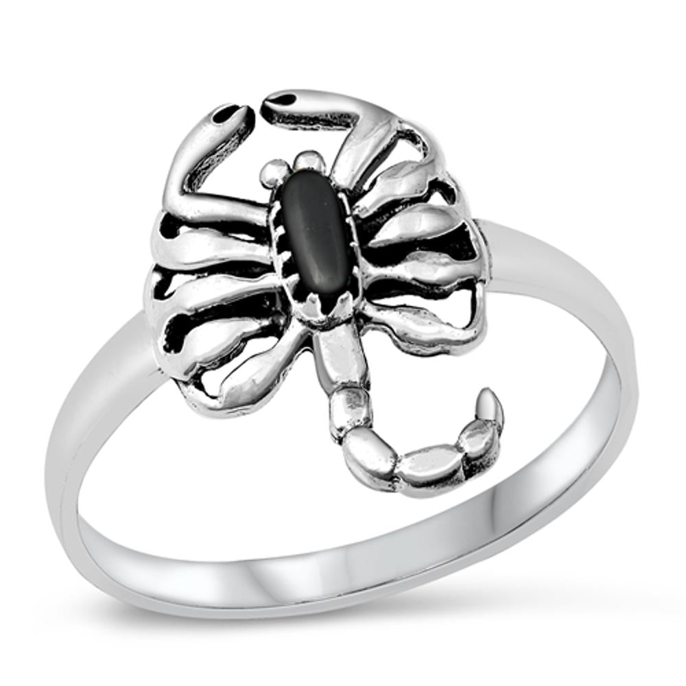 Sterling Silver Woman's Black Onyx Scorpion Ring Cute 925 Band 18mm Sizes 4-10