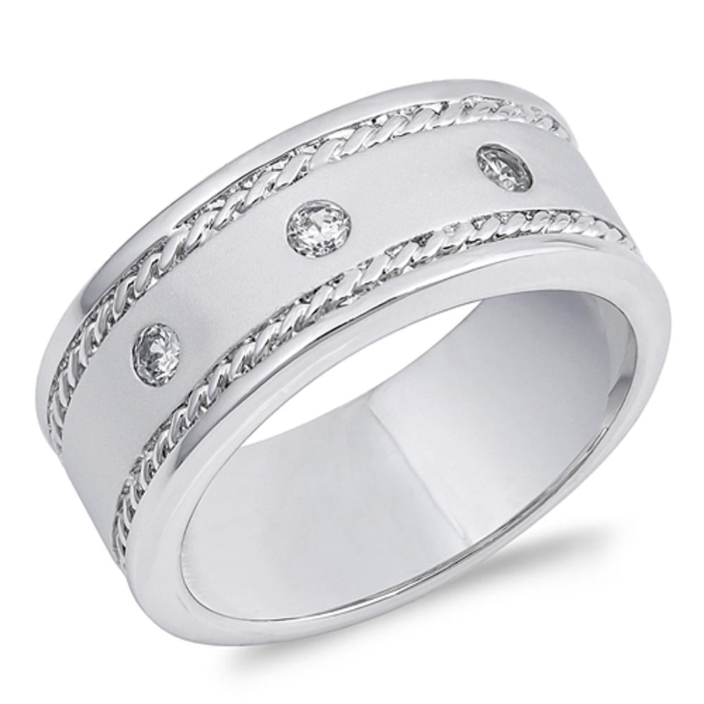 Sterling Silver Woman's White CZ Ring Classic 925 Wide Band New 9mm Sizes 6-10