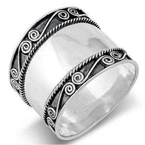 Sterling Silver Women's Bali Rope Ring Wide 925 Band Swirl Fashion Sizes 6-12