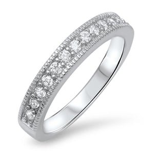 Wedding Band Stackable Clear CZ Wholesale Ring .925 Sterling Silver Sizes 5-10