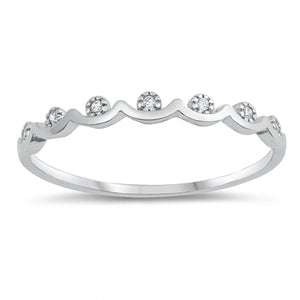 White CZ Wave Tiara Princess Dainty Ring New 925 Sterling Silver Band Sizes 4-10